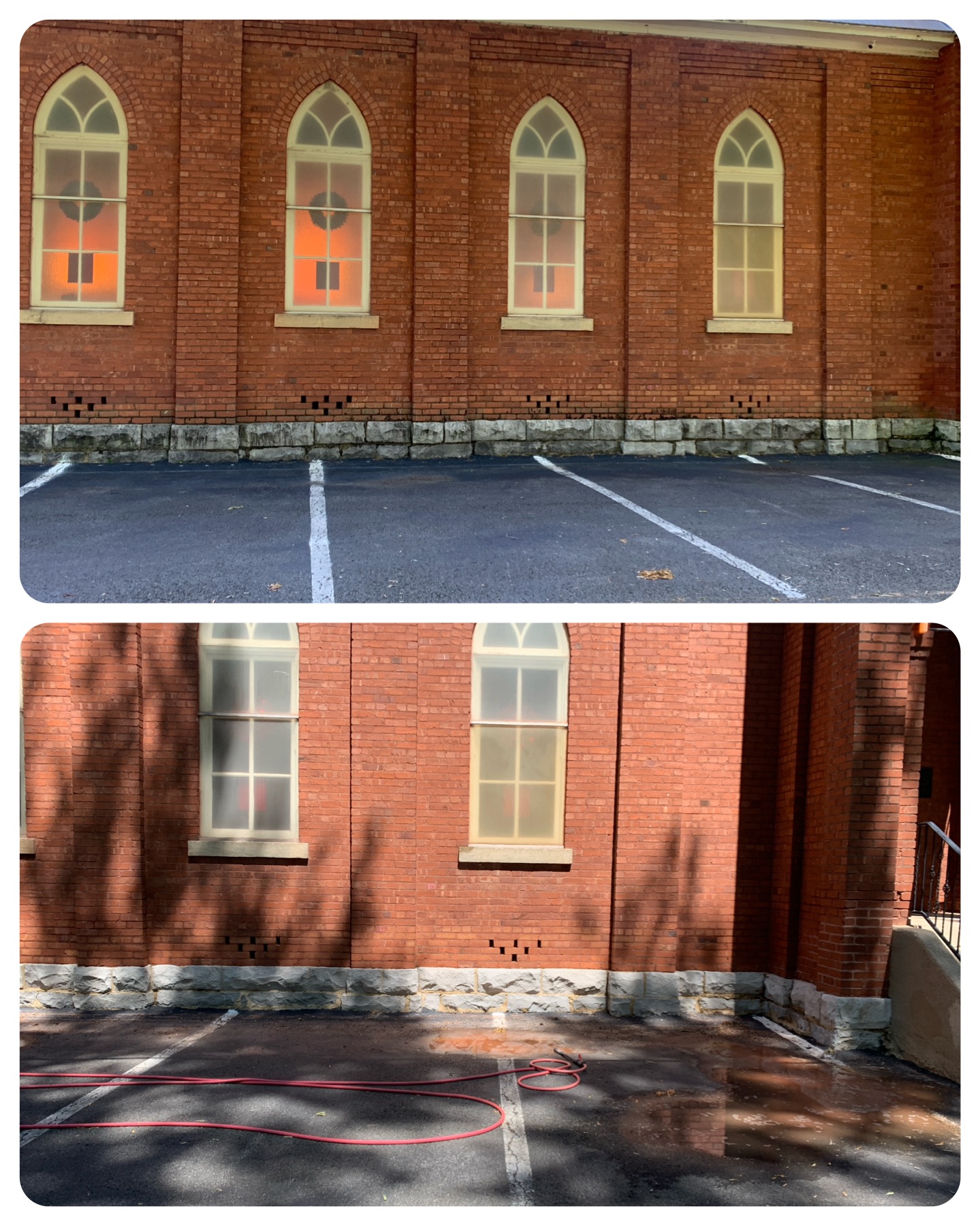 Working on this house of worship was truly an honor. Scrubbing away grime, mildew, and the stains of time felt like a journey through history, uncovering the original splendor of the building. I used the same meticulous house washing techniques I’ve perfected over the years, taking great care to preserve the structure's integrity. In addition to the exterior washing, I also performed gutter cleaning, and cleaned the sidewalks and driveway, ensuring that every aspect of the property was restored to its best condition. Each step of the process was thrilling, knowing that my work was contributing to the preservation of such a significant place.